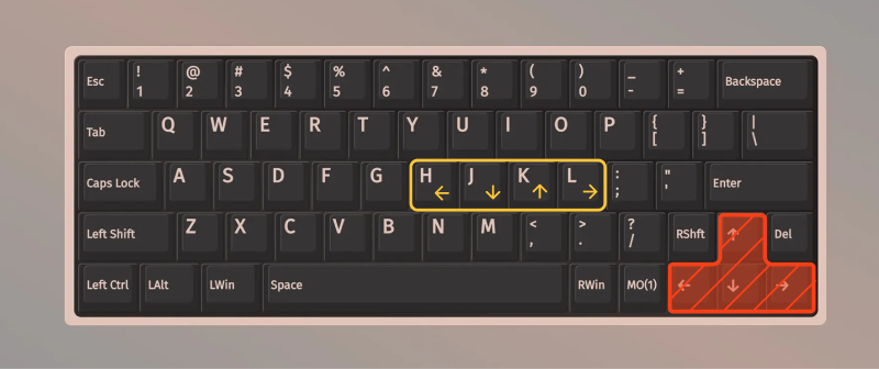 The first confusing thing is that to move around the text we don't use the arrow keys, but the letters H J K and L . This avoids moving your hands at the bottom of the keyboard to reach out the bottom keys. The arrangement of letters is also not necessarily obvious:
